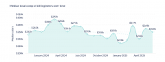 像Snap和Cruise如许的公司领取给AI工程师的薪酬别离约为635,000美元。我们看到AI工程师薪酬存正在较着波动。专注于人工智能的软件工程师正获得越来越丰厚...